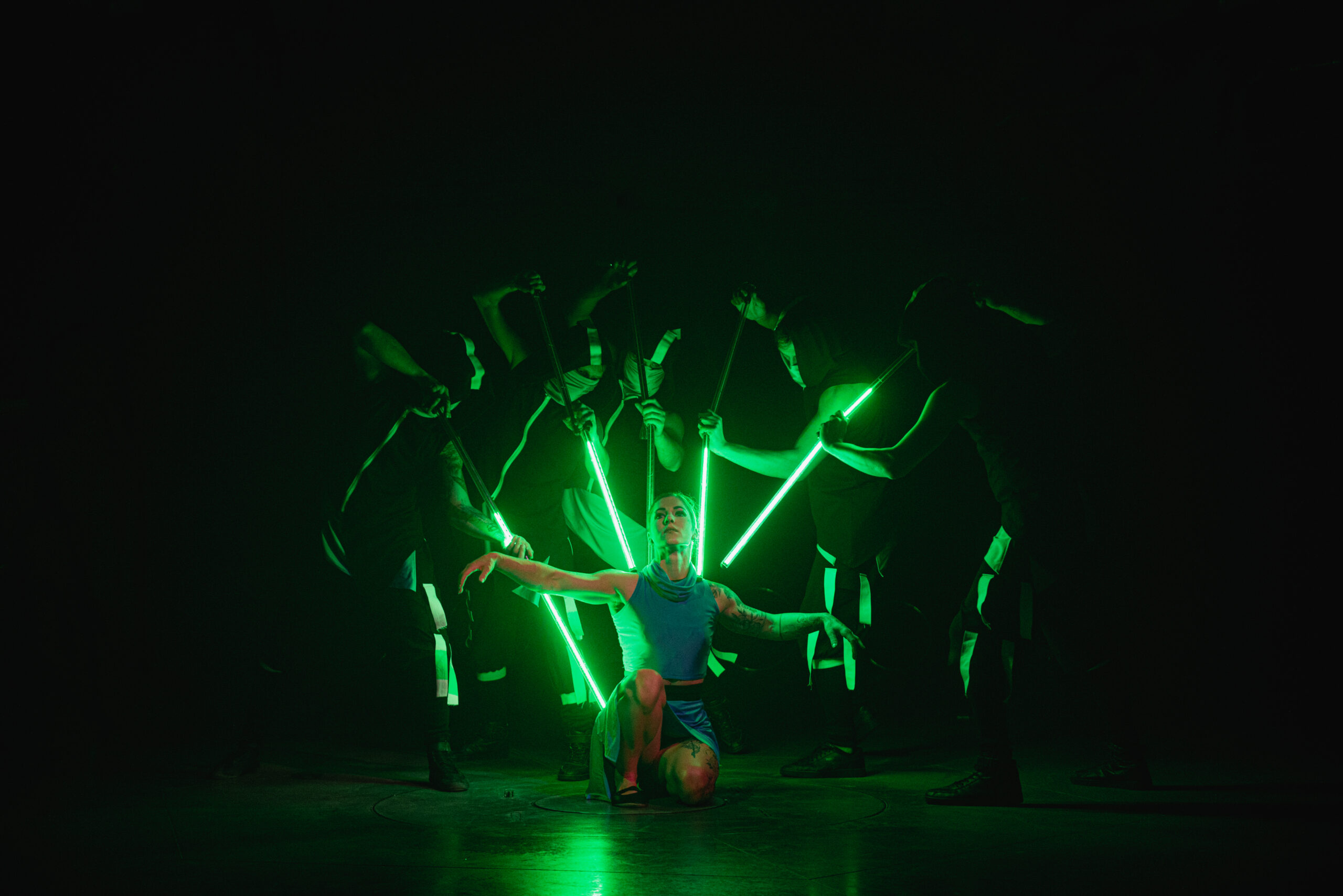 W tym spektaklu klasyczne ballady nabierają nowego, współczesnego wymiaru. Motywy pełne magii, tajemniczości i niepokoju spotykają się z technologią, która wkracza w nasze życie na co dzień. To spektakl, w którym duchy przeszłości splatają się z algorytmami i sztuczną inteligencją – wszystkim tym, co „niewidzialne”, ale silnie wpływające na naszą rzeczywistość.